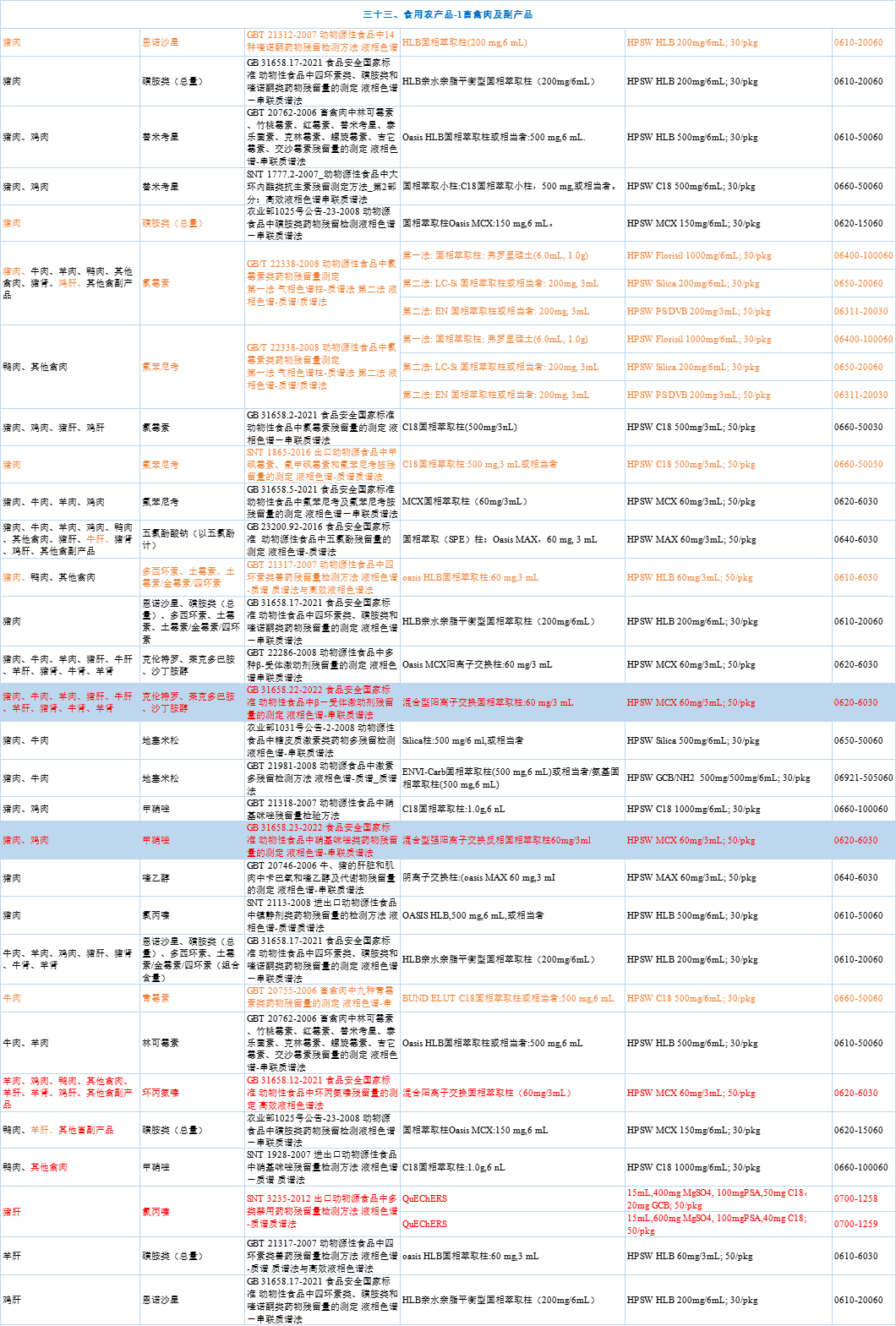 为进一步规范食品安全监督抽检工作,食品药品监管总局组织制定了《国家食品安全监督抽检实施细则(2023年版)》,对监督抽检的适用范围、产品种类、检验依据、抽样、检验要求、判定原则与结论提出了统一要求。华谱生物第一时间快速响应,依据2023抽检细则,按照食品基质33大类以及亚类,整理推荐了检测项目对应GB方法所需用到的标准和产品配置方案。