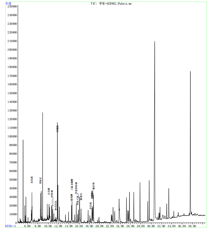 本次应用参考GB 23200.113-2018 食品安全国家标准 植物源性食品中208种农药及其代谢物残留量的测定 气相色谱-质谱联用法,使用HPSW GCB/NH2复合萃取柱进行测定。